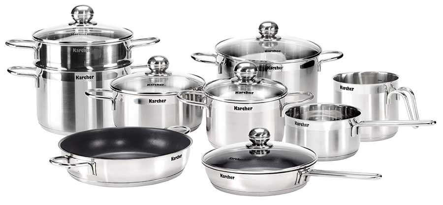 La batería de cocina Karcher está fabricada en acero inoxidable y está ideada para realizar una cocina baja en grasas.